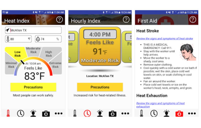 Encourage your employees to be prepared by downloading the OSHA-NIOSH Heat Safety Tool. It includes a real-time heat index, hourly forecasts, and first aid for heat stroke and heat exhaustion.